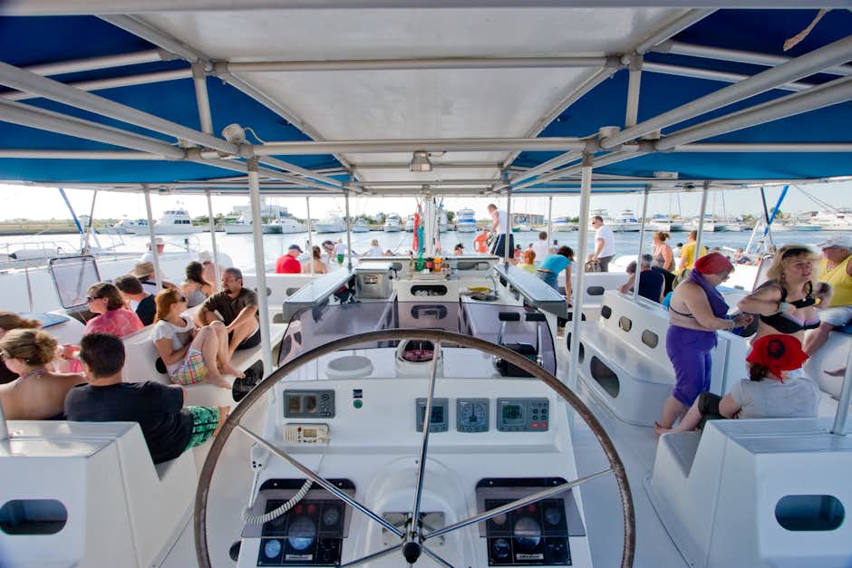 The catamaran set off from Varadero, Cuba, to Cayo Blanco – stopping at a coral reef to snorkle and a dolphin “zoo” to swim with.