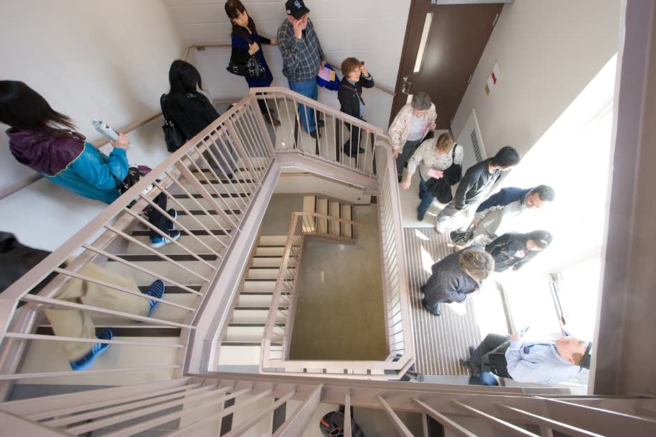Visitors come to the end of the tour in the Provincial Court House on a sprial flight of fire exit stairs.