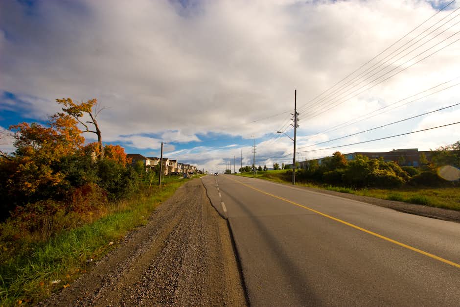 At the intersection of Gordon and College, going through University of Guelph. The road runs slightly downhill here, a respite from the long climb just moments ago.