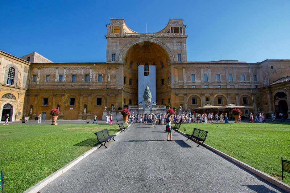 View of the bronze pinecone (Pigna), a Roman fountain from Belvedere Courtyard (Cortile del Belvedere), sometimes called Cortile della Pigna for its presence